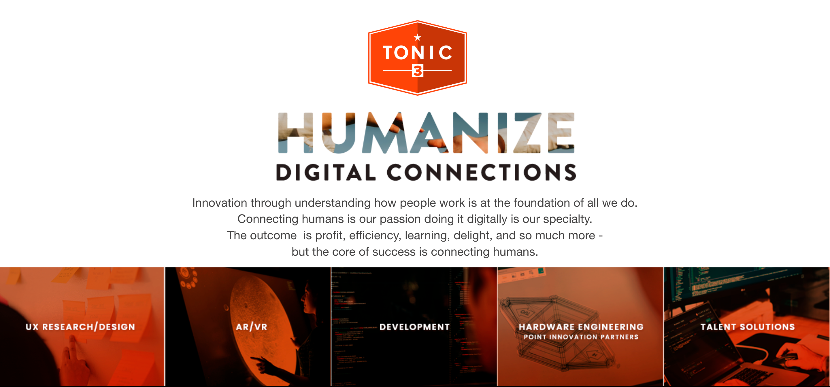Tonic3 develops and executes strategies that drive profit through Digital Transformation. Practically that means we are built to help clients hone the right strategy, implement the right technology, and build the right long-term capabilities to deliver lasting transformation.
